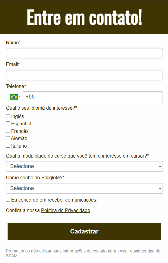 Aprenda no seu ritmo e de onde estiver com a flexibilidade das nossas aulas presenciais e online via Zoom. Garantimos qualidade em cada etapa do aprendizado, alinhando nossos cursos ao QCE (Quadro Comum Europeu) e contando com professores altamente qualificados. Descubra a diversidade de idiomas que oferecemos — Inglês, Espanhol, Francês, Alemão, Italiano e Português — e expanda seus horizontes culturais e profissionais.
